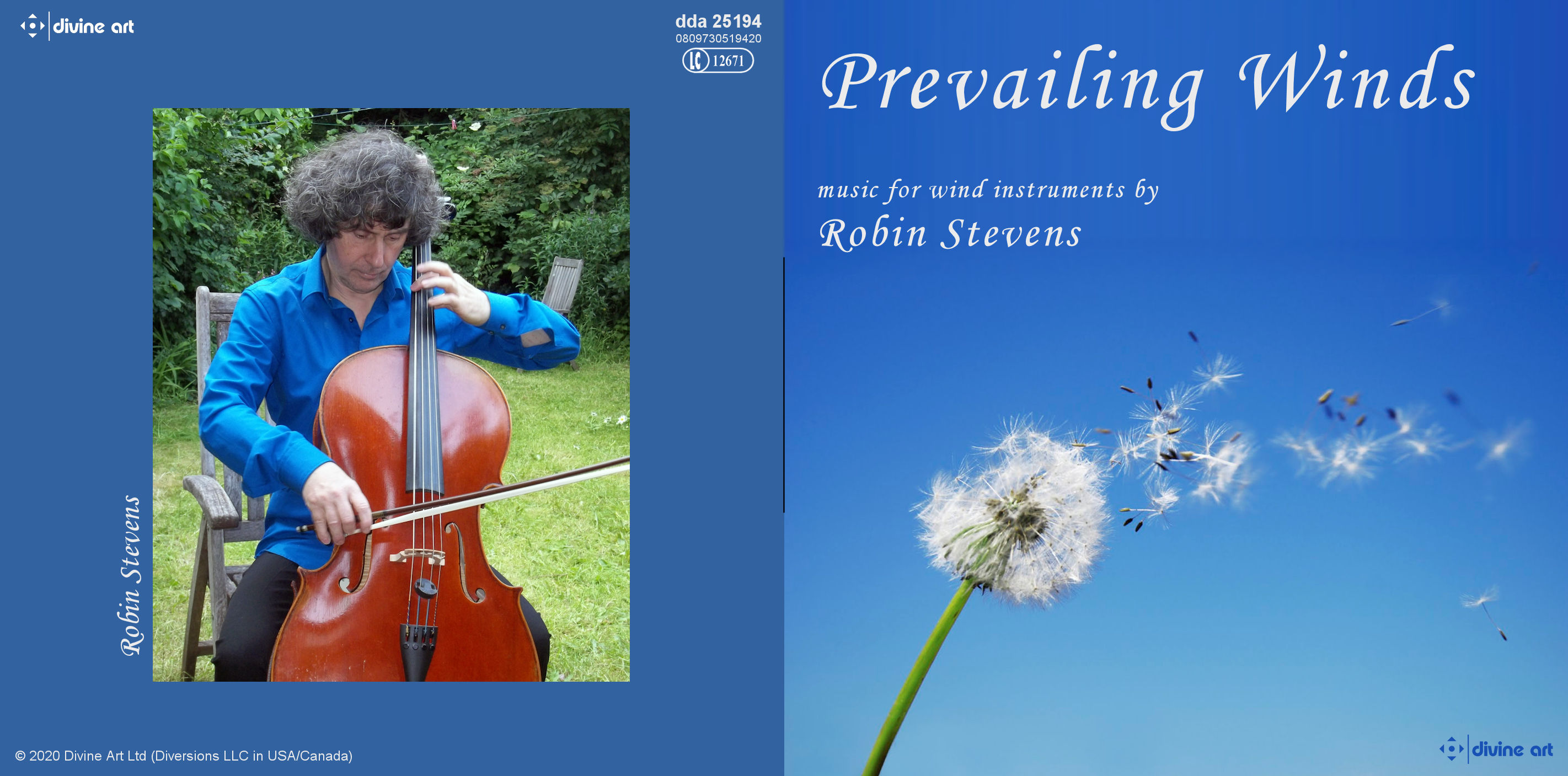 Prevailing Winds (2019) is a double-album of twenty five pieces centring on orchestral wind instruments, covering an enormous stylistic range, from Classical Romantic, through Jazz, Folk and pastiche Medieval to Contemporary Classical. The wind players are some of the finest – Sarah Miller (flutes), John Bradbury (clarinet), Richard Simpson (oboe), Helen Peller (bassoon), Lindsey Stoker (French horn), and John Turner (recorders) – and they give some truly outstanding performances. With a running time of 88 minutes this ambitious album is not to be missed by any lovers of wind music.